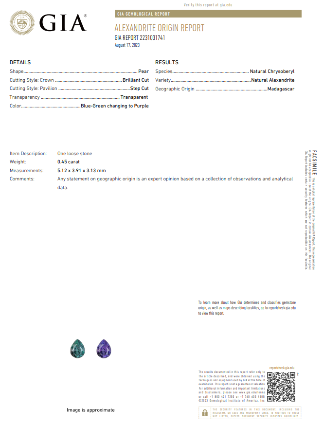 Each gemstone is accompanied by an independent reputable gem lab report. Lab reports state gemstone species type, color, treatment (if any), weight, shape, dimensions, and origin where applicable. If you have any specific questions regarding a gemstone you are interested in, you may call us at 212-382-1314 or email us info@theraregem.com. Please note, we do our best to get the most accurate photo of every gemstone.
